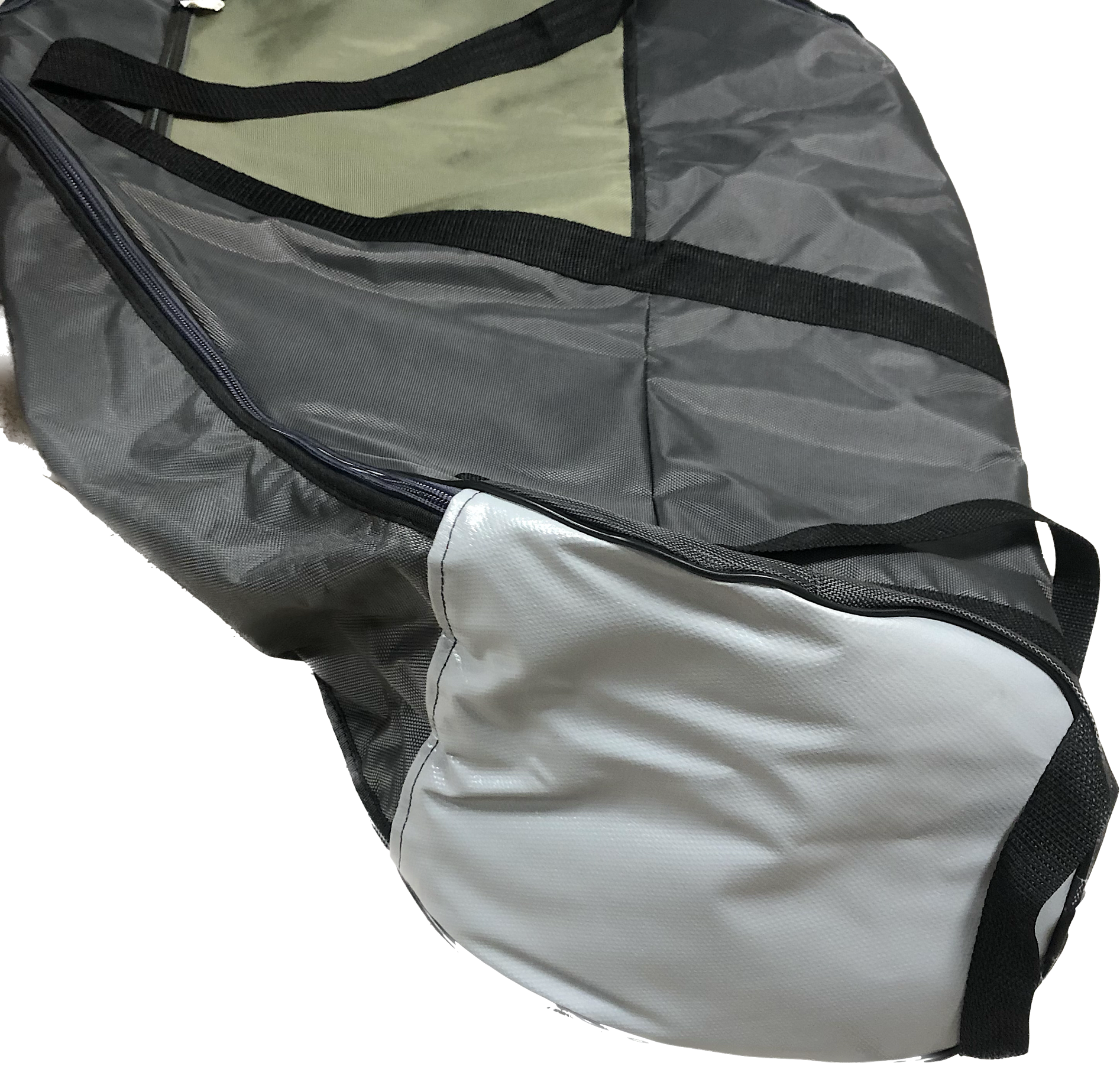 Внутренняя часть чехла на подкладке Oxford 210, в середине мягкая вставка из изолона, которая оберегает мотор от повреждений при перевозке, снаружи плотная водонепроницаемая ткань Oxford 1680