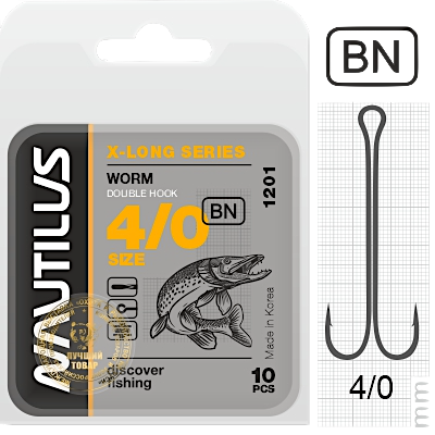 Крючок двойной Nautilus Sting 3XL SSD 1201 - двойной крючок из кованой проволоки. Основной особенностью крючка является экстремально удлиненное цевье 3XL. Двойники с таким цевьем пользуются популярностью у спиннингистов, использующих данную модель для оснащения различных мягких приманок, включая поролоновые рыбки.