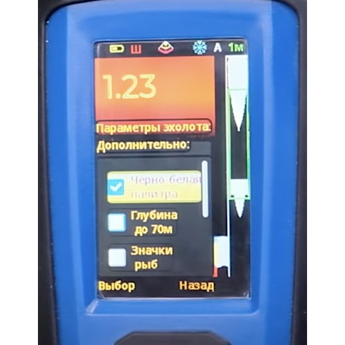 • 2 режима установки масштаба экрана: автоматический и ручной. В автоматическом режиме прибор сам подстраивает глубину под конкретные условия. Такой режим является наиболее подходящим для большинства пользователей.