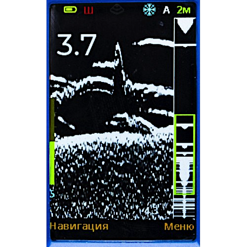 • Разрешение 320х240 пикс. Позволяет увидеть максимально детальную картинку, находящуюся под водой. Разрешение этого эхолота используется на 100% разрешения дисплея без пикселей. Картинка максимально полноцветная и максимально подробная.