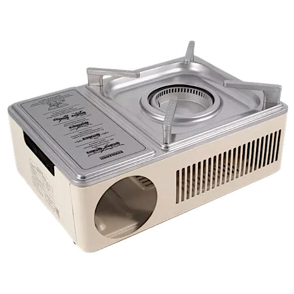 Плита оборудована одной горелкой с кольцевым образованием пламени, имеет пьезоэлектрический розжиг и блок управления подачи газа. Оборудованная магнитным клапаном(редуктором), в качестве топлива используются газовые смеси в баллонах с нажимным клапаном и цанговым захватом.