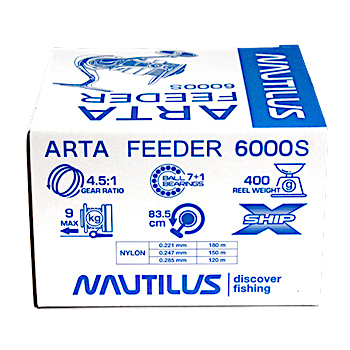 Nautilus Arta Feeder - эти фидерные катушки выделяются своим индивидуальным дизайном, более тонкой работой фрикциона, размером и емкостью шпуль, улучшенной безопасной клипсой. Передаточное отношение 4,3:1 для размера 4000S и 4,5:1 для размера 6000S подтверждает их мощность и комфорт работы с тяжелыми кормушками.