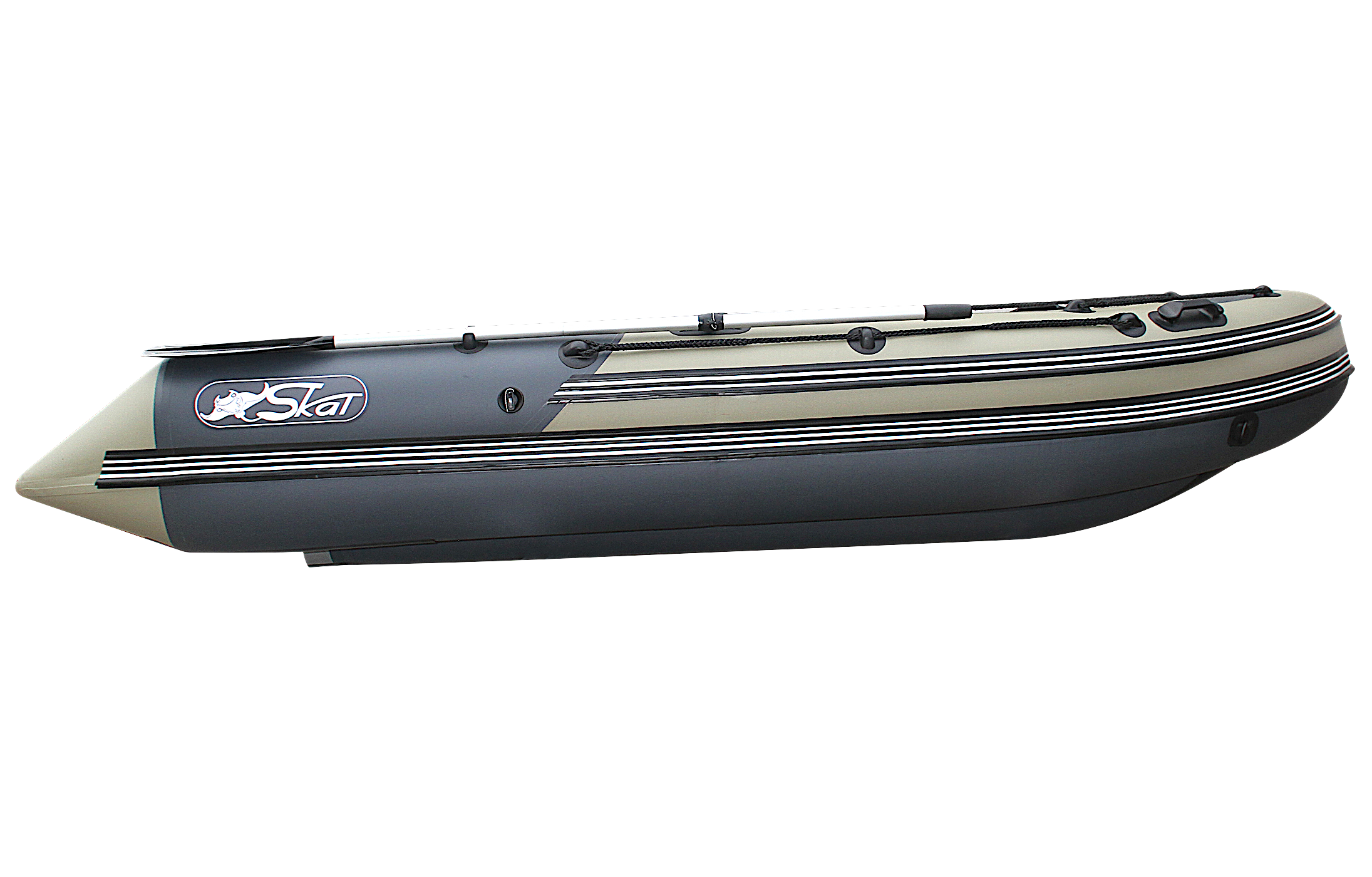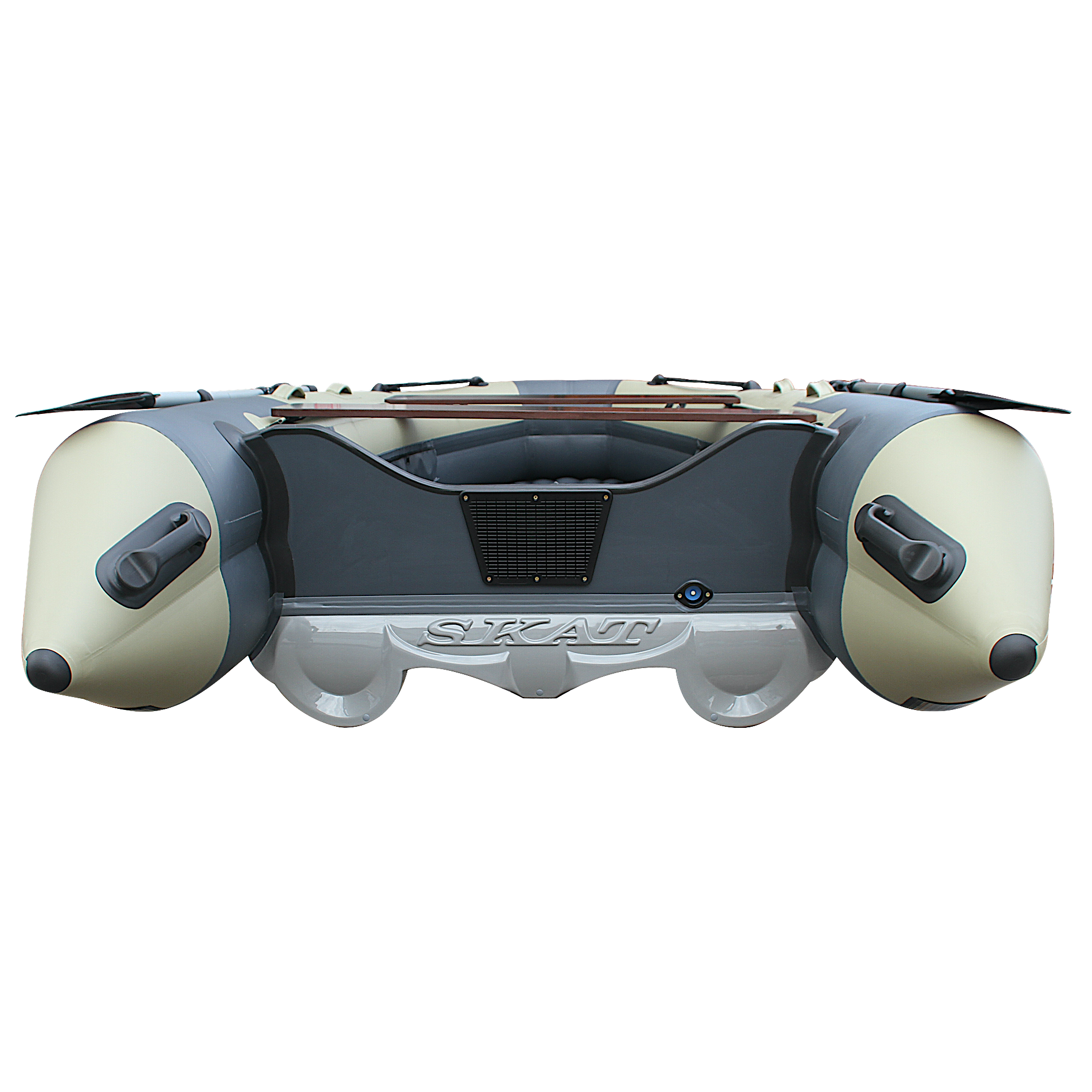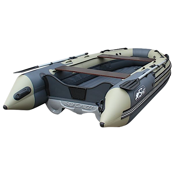Лодка Skat Тритон 390 НД — моторная модель с тримаранным надувным дном, делающим использование более комфортным для пассажиров и улучшающим мореходные качества судна — сопротивление водным потокам и волнам минимальное. По вместимости данная модель рассчитана на 6 человек. На стационарный транец можно установить мотор мощностью до 25 л.с. включительно. Сборка лодки не занимает много времени благодаря полностью надувной конструкции судна. Днище лодки усилено резиновыми лентами по всем трем килям по всей длине.