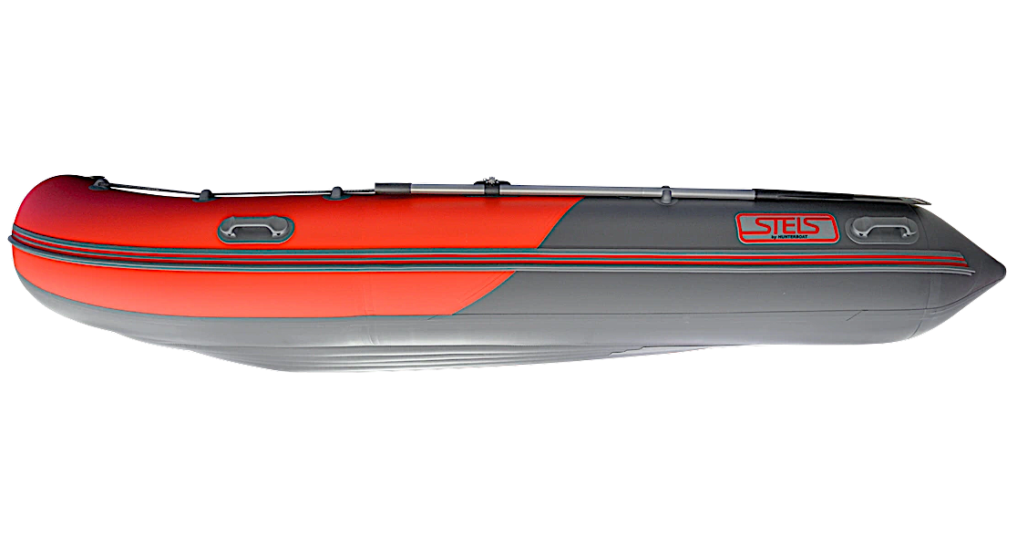 Надувная лодка СТЕЛС 355 АЭРО со стационарным вклеенным умеренно-килевым дном низкого давления (НДНД) рассчитана на использование с мотором до 20 л.с. с максимальной загрузкой до 700 кг. Предназначена для рыбалки, охоты и активного отдыха на воде небольшой компанией. Выпускается в двух расцветах - комбинированном красно/черном цвете и комбинированном черно/камуфлированном цвете.