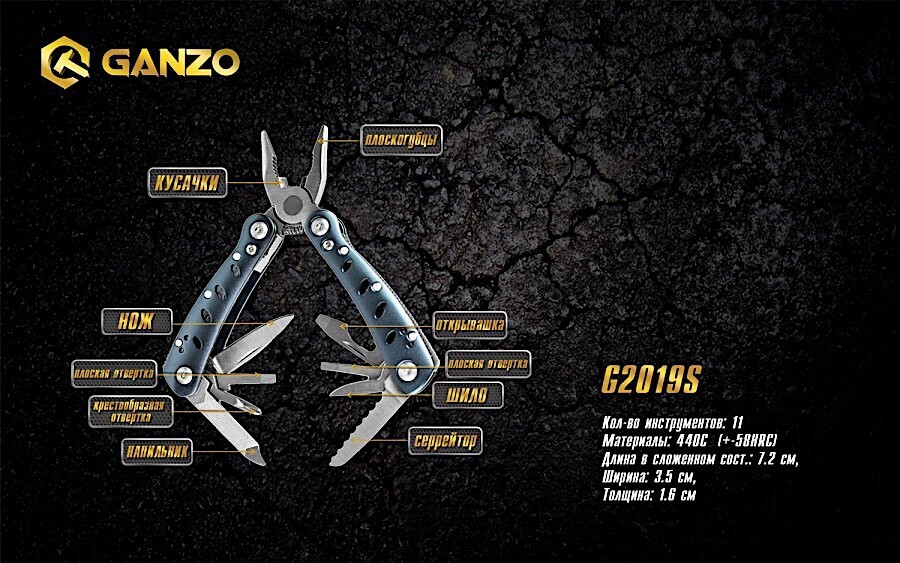 Приобретая мультитул Ganzo 2019 S, вы получаете следующие инструменты: