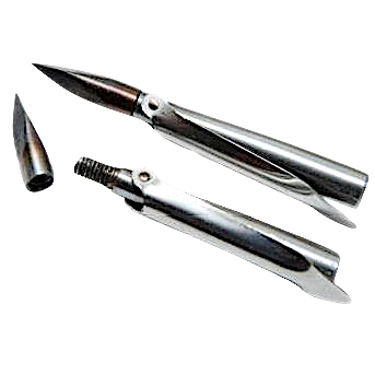 Наконечник со сменным оголовьем изготовлен из нержавеющей стали марки 40Х13. Оголовье наконечника исполнено в виде трехгранной заточки, закалено до 45 ед. HRC. и обладает наилучшими проникающими способностями.