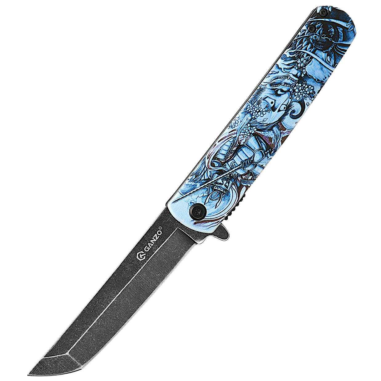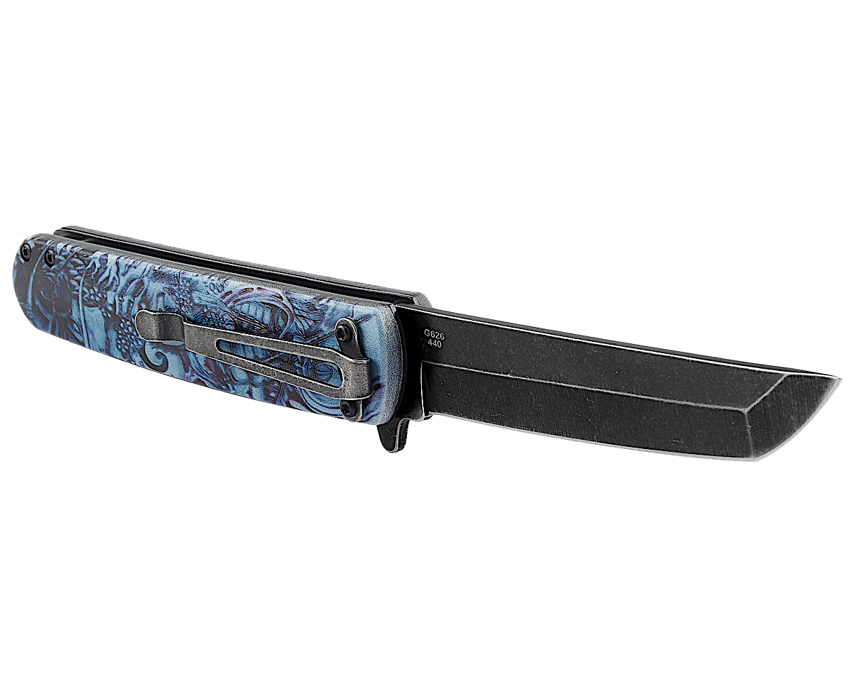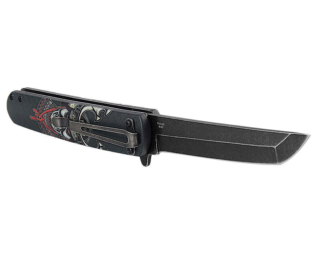 Нож Ganzo 626 приятно удивит не только любителей простых и практичных EDC-ников, но также и тех, кто любят некую «изюминку» в модели. Здесь таковой является дизайнерское оформление флиппера, для которого придумали 4 различных варианта рукояти. Можно подобрать обычный чёрный цвет, а можно взять что-то из предложенных экземпляров с рисунками. Это стильно выглядит, и поможет владельцу такой модели выделиться на фоне других ножеманов.