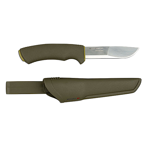 Фанаты ножей подтвердят, что продукция Morakniv сочетает в себе отличные рабочие характеристики и невысокую стоимость. Данная модель правило только подтверждает. Пластиковые ножны имеют крепление для ремня, также в них предусмотрено отверстие для оттока воды. Рукоять изделия выполнена с очень удобными подпальцевыми выемками, поэтому держать нож в руке и использовать его комфортно. В состав рукояти вошли пластик и резина. Эргономичная модель, при работе не выскользнет из руки.