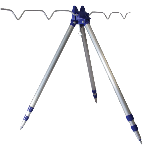 Острые концы ног и их изменяемая длина позволяет установить треногу на наклонных поверхностях. Перекладины для установки удилищ откидываются, крючок позволяет подвесить груз,для лучшей устойчивости.