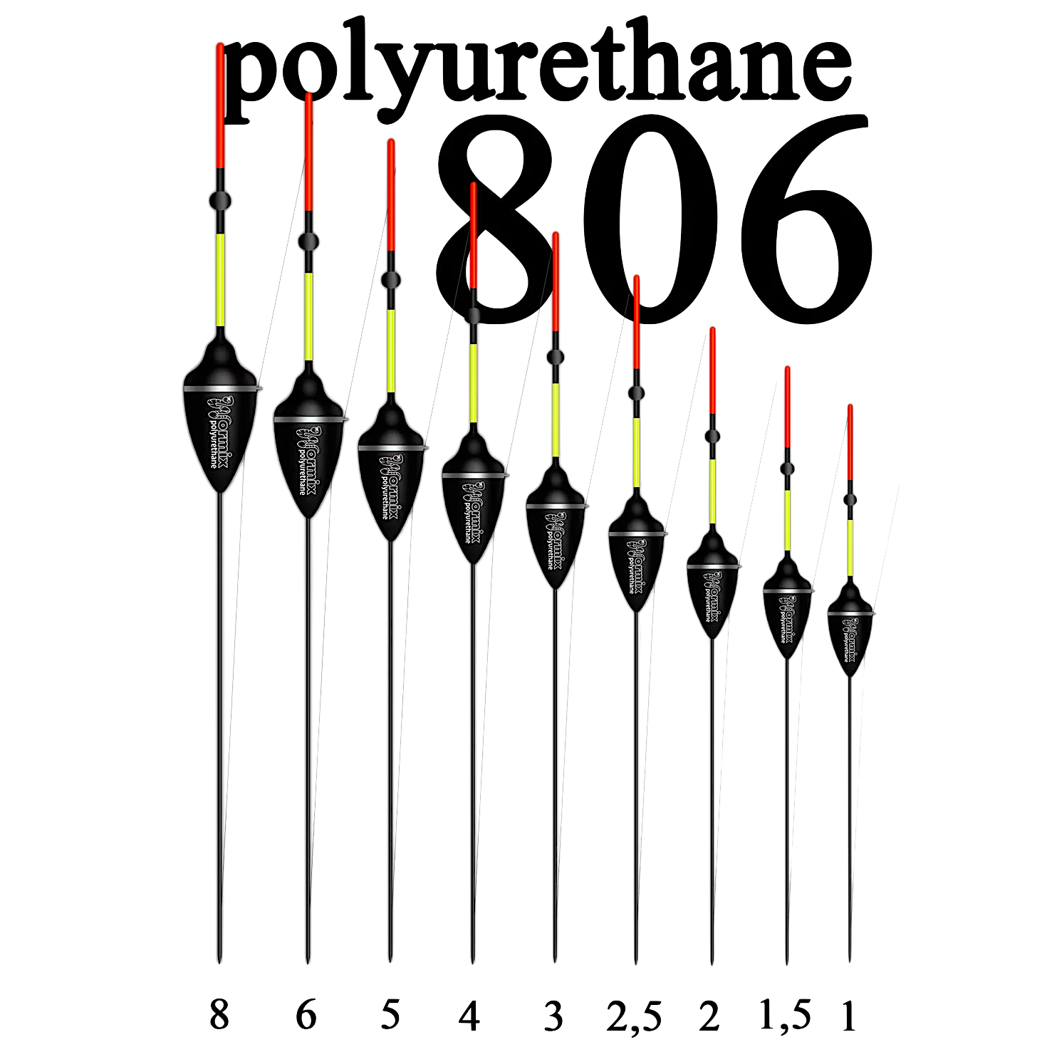 Поплавки из полиуретана очень легкие, прочные и долговечные. Полиуретановые поплавки серии Wormix 806 предназначены для ловли на среднем и слабом течении.