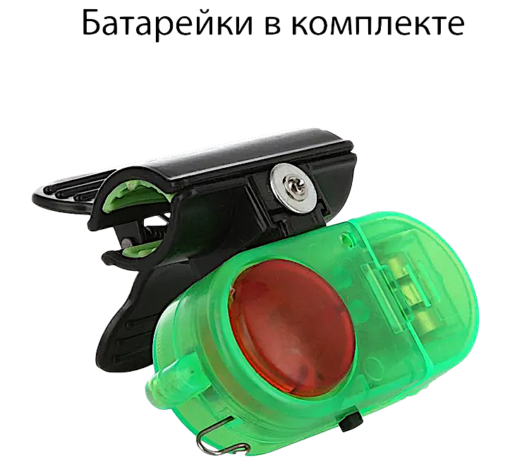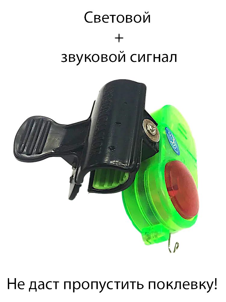 Сигнализатор поклевки с креплением на удилище, (световая и звуковая индикация) разбудит вас, когда рыба начнет кушать наживку. Все очень просто - закинул удочку, прикрепил сигнализатор на удилище, продел леску через специальную петельку сигнализатора и можно отдыхать. В момент поклевки, сигнализатор разбудит вас громким пронзительным писком - настал момент подсечки улова.