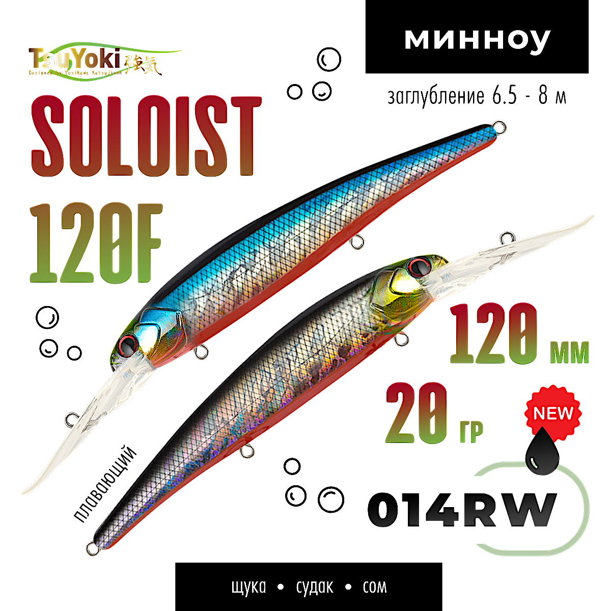 Крупный минноу для ловли троллингом на неоднородном рельефе и свалах с глубинами 5-9 метров. Основные трофеи – судак,щука,сом.