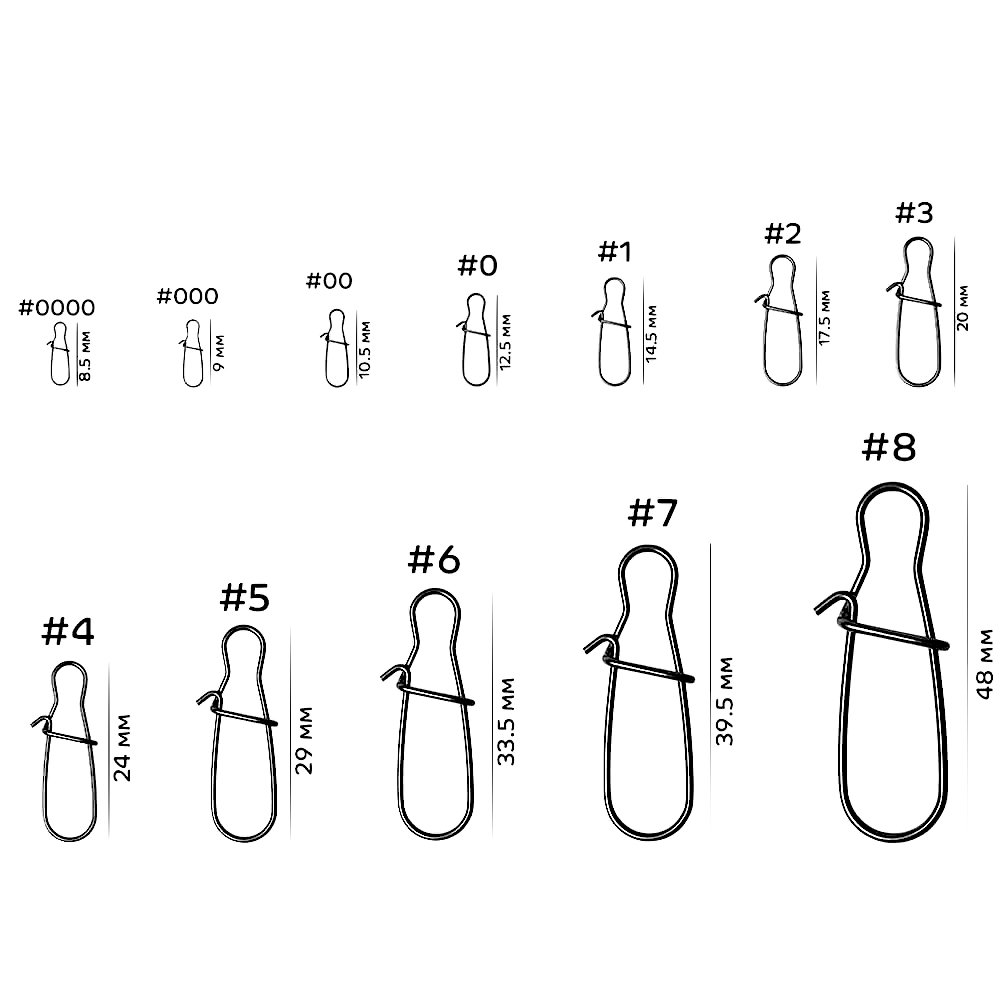 Для изготовления модели используется прочная стальная проволока. Чтобы расстегнуть карабин, не нужно прилагать чрезмерных усилий, но при этом он отлично выполняет свою функцию, так как не разгибается под нагрузками во время вываживания рыбы, которая оказывает сопротивление. Форма карабина совместима с любыми монтажами и подходит для крепления практически всех видов приманок.